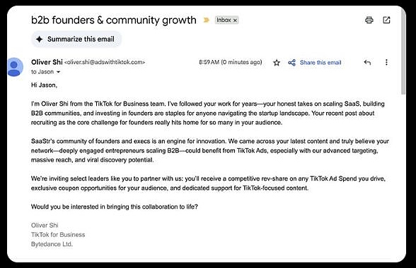 Historically, from 1999 to 2015 making observations about an organization or contact was enough to stand out in inboxes and earn replies. It seemed personal, genuine... like it took TIME for the sender to construct.